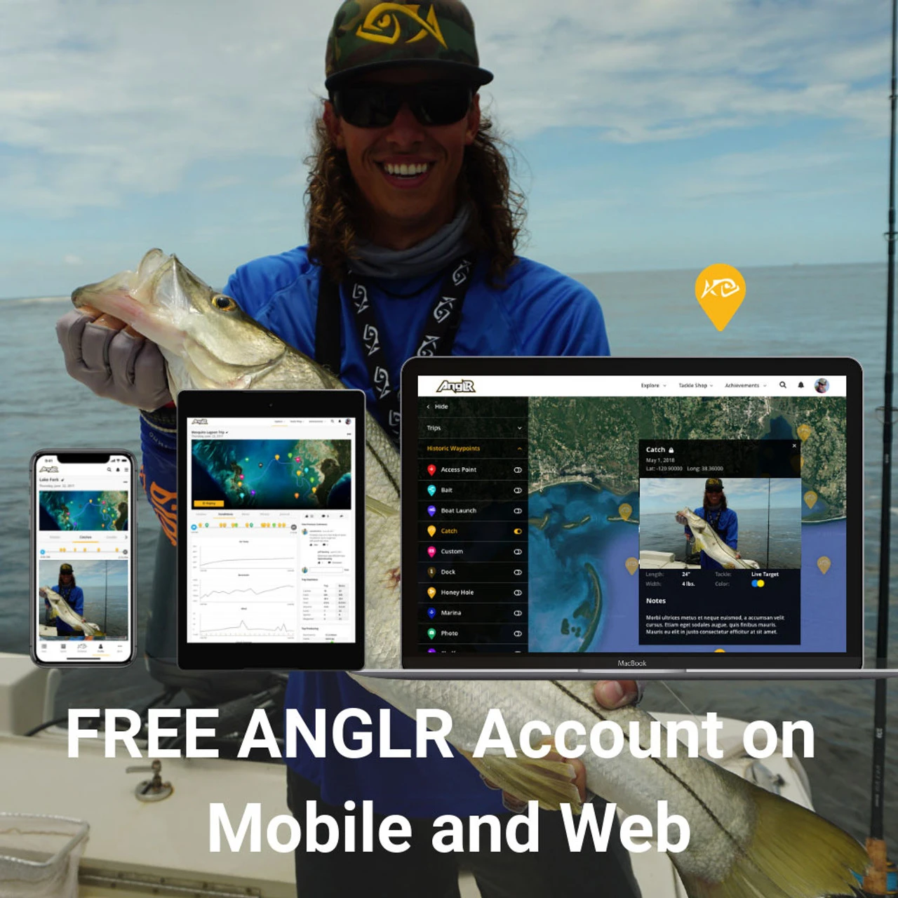 Waypoints: ANGLR is the most powerful way to track and save your spots. Add, edit, delete, or share over 15 different waypoints before, during, and after trips. Layer historic waypoints and catches from multiple trips to review and analyze.