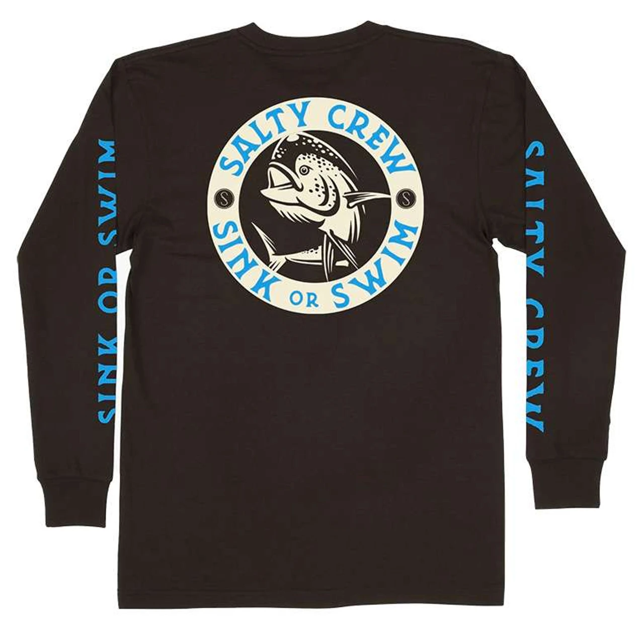 The Salty Crew Mighty Mahi Long Sleeve Premium T-Shirt is inspired by the mahi that roam the seas. It’s a comfortable regular fit long sleeve tee. This tee is made with 100% 24 singles ring-spun cotton material. This long sleeve tee features screenprinted Salty Crew mahi design across the back, with small logo across the front left chest, and logo down the sleeves.