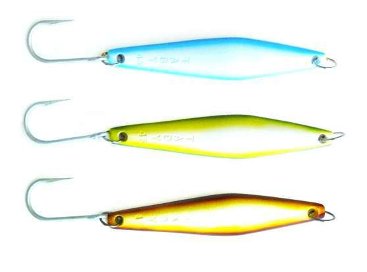 The Tady #45 Lure with siwash hook is easy to fish and provides great action in the water. Perfect for vertical jigging. This lure is made of light metal alloys. This lure will run 6 to 8 inches sub surface, delivering an erratic side to side swim. Also known as “Surface iron”, this lure is most deadly when used on surfaces feeding fish. Retrieve this lure at medium to slow speeds to maximize its action. Great for Boat anglers and Surf casters. Deadly on East Coast Stripers , Bluefish and West Coast yellowtail.